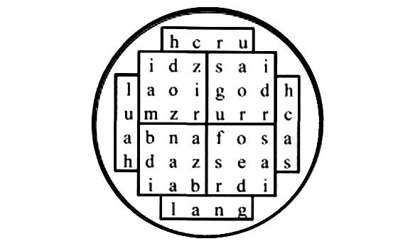 Наступало не быстро, и первым героем видений стал ангел Налвадж, который показал очередную таблицу, Скрижаль Бога (она еще будет описана), заверив, что она содержит в себе «субстанцию» (он так и сказал – «субстанцию») Отца, Сына и Святого Духа (рисунок 4).