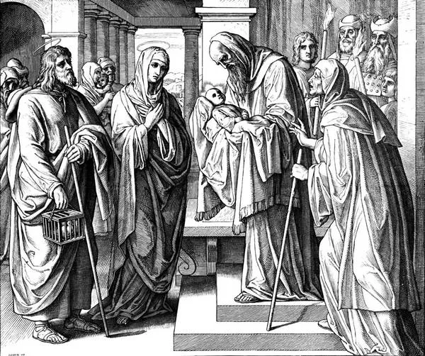 А когда исполнились дни очищения их по закону Моисееву, принесли Его в Иерусалим, чтобы представить пред Господа, и чтобы принести в жертву, по реченному в законе Господнем, две горлицы или двух птенцов голубиных. Тогда был в Иерусалиме человек, именем Симеон. Он был муж праведный и благочестивый, чающий утешения Израилева; и Дух Святой был на нём. Ему было предсказано Духом Святым, что он не увидит смерти, доколе не увидит Христа Господня. И пришёл он по вдохновению в храм. И когда родители принесли Младенца Иисуса, чтобы совершить над Ним законный обряд, он взял Его на руки, благословил Бога и сказал: Ныне отпускаешь раба Твоего, Владыко, по слову Твоему, с миром, ибо видели очи мои спасение Твоё, которое Ты уготовал пред лицом всех народов, свет к просвещению язычников и славу народа Твоего Израиля. Иосиф же и Матерь Его дивились сказанному о Нём. И благословил их Симеон и сказал Марии, Матери Его: се, лежит Сей на падение и на восстание многих в Израиле и в предмет пререканий, – и Тебе Самой оружие пройдёт душу, – да откроются помышления многих сердец. Тут была также Анна пророчица, дочь Фануилова, от колена Асирова, достигшая глубокой старости, прожив с мужем от девства своего семь лет, вдова лет восьмидесяти четырёх, которая не отходила от храма, постом и молитвою служа Богу день и ночь. И она в то время, подойдя, славила Господа и говорила о Нём всем, ожидавшим избавления в Иерусалиме. И когда они совершили всё по закону Господню, возвратились в Галилею, в город свой Назарет. Младенец же возрастал и укреплялся духом, исполняясь премудрости, и благодать Божия была на Нём.