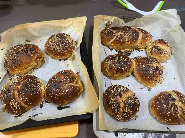– Сплетите халы из трех колбасок каждую и положите на лист кондитерской бумаги, оставив между ними достаточно места, потому что халы в духовке поднимутся.