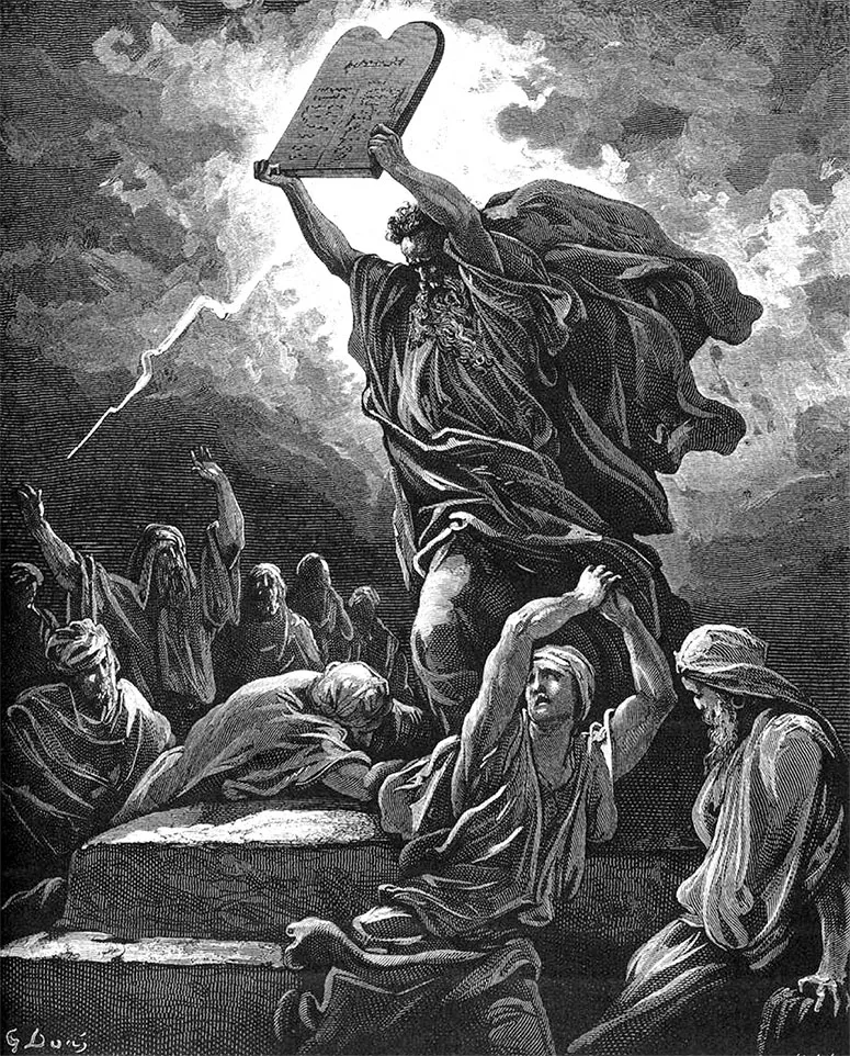 Третья книга Торы – Ваикра (Левит) содержит правила жертвоприношений животных и других храмовых ритуалов, которые соблюдало израильское племя – колено левитов. Четвертая книга, Бемидбар (Числа), названа так потому, что в ее начале подсчитывается численность израильтян. Здесь также рассказывается о восстании Кораха против Моше. Последняя книга Торы – Дварим (Второзаконие). Практически вся она состоит из прощального обращения Моше к израильтянам, готовым отправиться в Землю обетованную; он знает, что ему не дано вступить в нее, но перед смертью делится своими последними мыслями с народом, основателем которого стал.