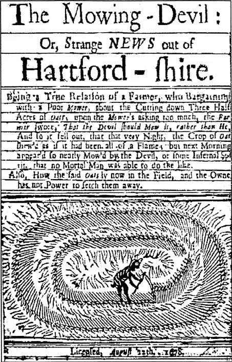 Таинственные круги, возникавшие на возделанных полях, а в редких случаях – на лугах, особенно привлекали общественное внимание в последние десятилетия XX века, когда об их обнаружении стали писать средства массовой информации. Несмотря на то что их называют кругами, в действительности рисунки бывают различных геометрических форм. Символическое значение их интерпретируют по-разному. Точно лишь одно: существует множество мифов вокруг «демона зерна», «зерновой ведьмы» или «зернового ангела». Агроглифы наводят людей на мысль о «кругах судьбы», которые образовались в точках, где встречались мифические существа.