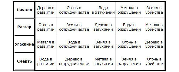 Этапы существования объектов и процессов по Пяти стихиям