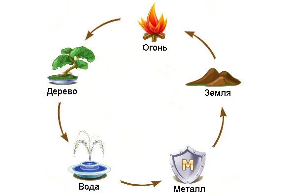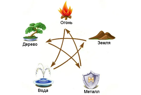 Схема взаимоотношений объектов и процессов по Пяти стихиям, рассмотренная нами только что, является наиболее часто употребляемой в практике фэн-шуй. Но существует и еще одна, менее популярная схема взаимоотношений Пяти первоэлементов. Здесь выделяются четыре типа отношений между объектами либо процессами: равенства, воровства, противоречия и поглощения.