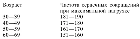 Важным фактором, определяющим эффективность занятий тайцзицюань, является интенсивность физической нагрузки, определяемой по частоте сердечных сокращений. Зона оздоровительного воздействия физической нагрузки соответствует 60–80 % максимальной частоты сердечных сокращений для каждого возраста. Предельно допустимую норму нагрузки можно определить самостоятельно, отняв от 220 свой возраст. В таблице приведены максимальные частоты сердечных сокращений (ЧСС) для разных возрастных групп.