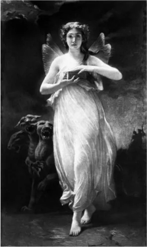 Танатос обладает железным сердцем и ненавистен богам. Он единственный из богов, не любящий даров. Культ Танатоса существовал в Спарте. Танатос чаще всего изображался крылатым юношей с погашенным факелом в руке. Изображен на ларце Кипсела как черный мальчик рядом с белым мальчиком Гипносом14.