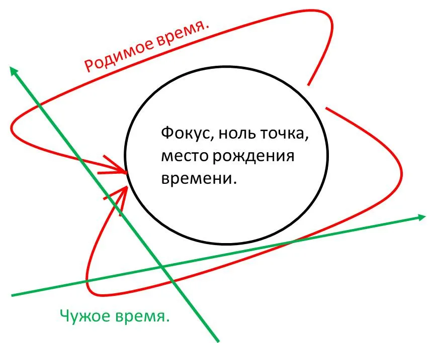 К форме (платью) ткани времени относится не только время собственное, а и то время, сквозь которое надо пройти чтобы вернуться в место рождения. Это выглядит так: