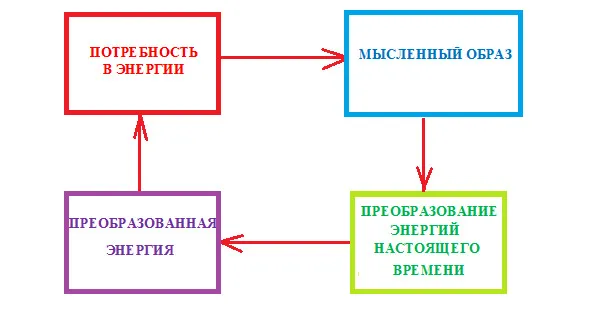 ИНФОРМАЦИЯ – ЖЕЛАНИЕ – ПРЕОБРАЗОВАНИЕ ЭНЕРГИЙ – ОБЛЕГЧЕННАЯ ЭНЕРГИЯ – ВРЕМЯ.