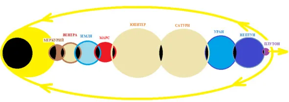 Между существом энергий Солнца (защитной оболочки) и энергиями планет образуется эффект перераспределения остаточной античастотной тяжести, ослабевающий по вектору отдаления энергии планеты от Солнца.