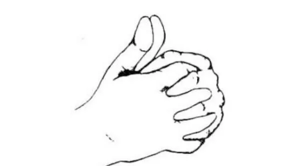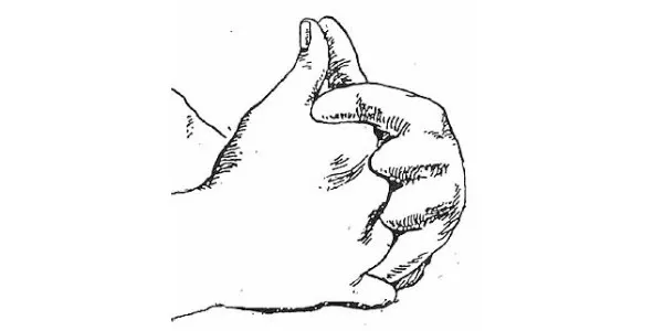 1. Большие пальцы обеих рук располагают так, чтобы их боковые поверхности соприкасались.