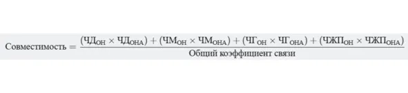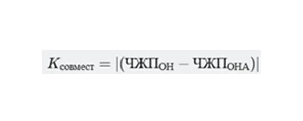 Коэффициент совместимости (Kсовмест) рассчитывается как абсолютная разница между основными показателями партнеров: