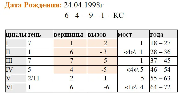 Так выглядит Расчет Карты Жизни по Дате Рождения.