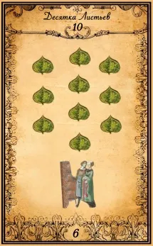 Итак, Десятка Листьев призывает к затратам энергии, времени и нервов больше, чем дела в привычной жизни. Обычно, клиент сам называет эту проблему, из-за нее он и пришел на прием. Если карты выпадает в сфере будущего, то необходимо предупредить: какие причины могут стать источником сложностей, какие люди в этом будут участвовать. Возможно, сам клиент сделает ошибки и виноват во всем только он сам.