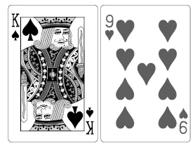 При такой комбинации мы говорим о том, что 6 Пик перед Королем Червей, или 6 Пик идет из-под Короля Червей: