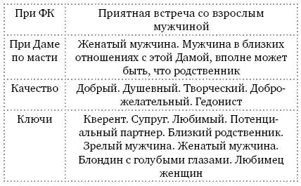 Король Червей – Валет Червей. Все Валеты при Королях по масти означают мысли этих королей, при этом связка не должна разрываться другими картами. Также при загадывании на Короля Червей потенциального партнера такая связка может указать на то, что Король Червей уже знаком нашей Даме, потенциальный мужчина для отношений будет из старого окружения.