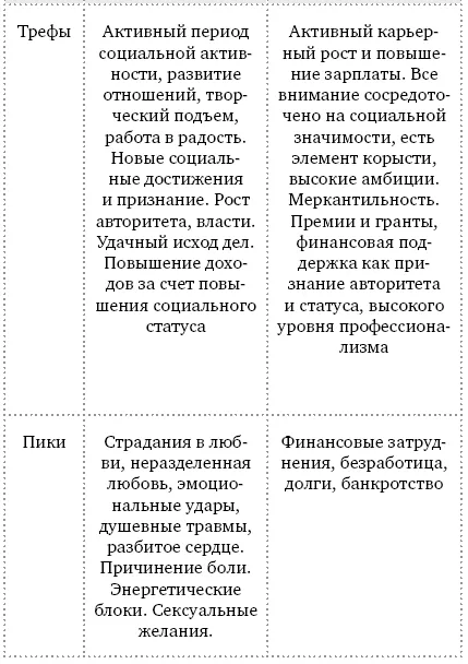 Валет Треф – Ланселот дю Лак. Валет Треф в гадании отвечает за многочисленные тяжелые напряженные хлопоты, большое количество работы, суету, повышенную активность. И отражение этих качеств мы находим и в легендах о Ланселоте: многочисленные перипетии его любви к королеве Гвиневре – супруге короля Артура, его участие в поисках святого Грааля, постоянные странствия, приключения, преодолевание трудностей.