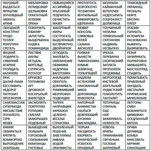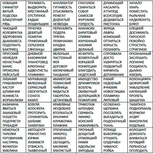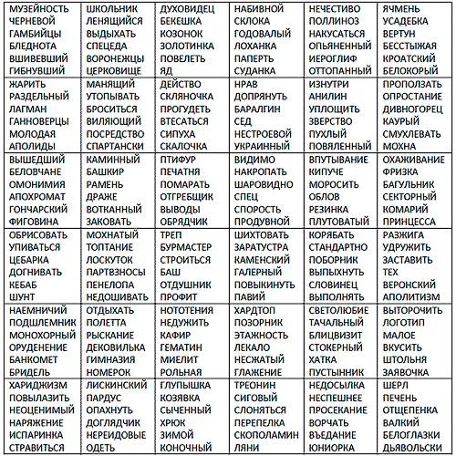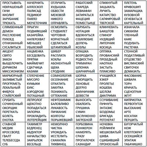Аналогичным методом бросания костей выберете на выбранной странице ячейку с вариантами слов.
