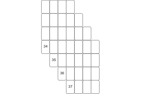 Еще раз перетасуйте нашу похудевшую колоду (тридцать три карты уже на столе). Возьмите четыре карты сверху колоды и разложите слева сверху-вниз (от карты 34 до 37).