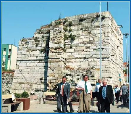 Руины бывшей гауптвахты в генуэзской крепости – сохранились в Гелиболу со времен «галлиполийского стояния». Крайний справа Ю.Н. Емельянов, за ним – В.В. Петраков