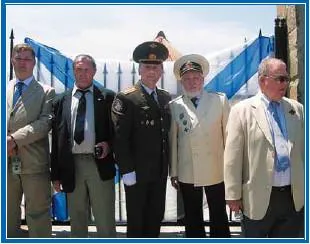 46. Андреевский флаг стал символом единения. У Мемориала стоят справа-налево: ГВ. Машталер, Н.А.Черкашин, С.И. Нелюбов, В.В. Стефановский