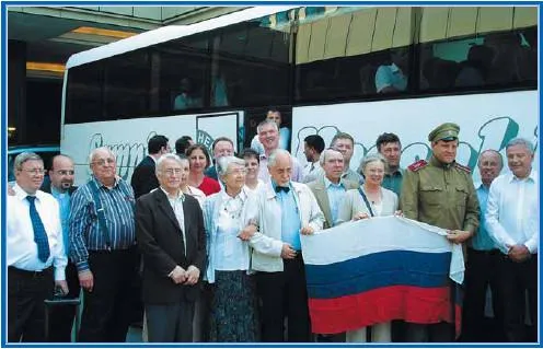 52. Хор «Союза потомков Галлиполийцев» у кургана вместе с епископом Михаилом; слева-направо: С.С. Тарасов, А.П. Григорьев, А.Н. Малинин, А.А. Худокормов, Н.С. Белявский