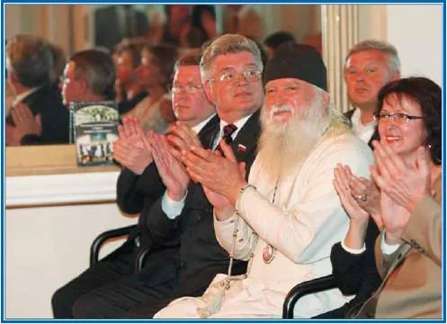 60. Замечательному пению хора и исполнительнице Татьяне Петровой аплодируют А.П. Торшин, С.Е. Щеблыгин, епископ Михаил, В.В. Петраков, Л.П. Соколова