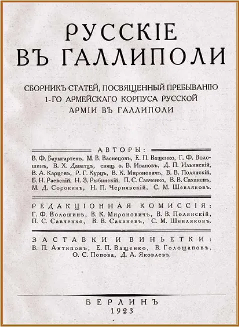 Авторы книги – люди военные и, безусловно, талантливые, а потому стиль подлинника и язык повествования отмечены своеобразием: строгие формулировки, напоминающие рапорты, соседствуют здесь с редкими по драматизму, эмоциональному напряжению и проникновенности фразами. Бережно, как к великой ценности, составители отнеслись к сохраненным ими после года «галлиполийского стояния» материалам. Они уже не рассчитывали, что когда-либо смогут сказать большее о том времени, а потому поместили в книгу едва ли не все вывезенные с собой документы. Обилие таблиц, составленных с военной пунктуальностью, различные статистические выкладки, детальность описаний быта, – все это говорит не столько об особенностях «мемуарной памяти», сколько о том, что любой штрих, деталь жизни в лагере воспринимались самими галлиполийцами с ясностью последнего «судного дня». А потому главное в книге – ее дух, та нравственная сила и воля к жизни, которые пронизывают и объединяют все статьи. Публикуя сборник «Русские в Галлиполи», мы сочли необходимым снабдить издание примечаниями, раскрывающими предысторию некоторых событий, обстоятельства появления ряда общественных организаций, значение некоторых вышедших из употребления слов. В качестве приложения, помимо ряда официальных документов периода 1920–1921 годов, даются биографические сведения о генералах П.Н. Врангеле и А.П. Кутепове, которые помогают пролить свет на сложность взаимоотношений этих незаурядных личностей. Издание содержит именной указатель, где читатель найдет сведения о большинстве лиц, упоминаемых на страницах книги.