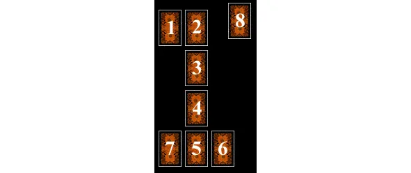 Этот расклад показывает развитие событий в ближайшие несколько дней (от недели до месяца) и используется как основа для принятия решения, когда жизненная ситуация достигла очередного «поворота». (Только Старшие Арканы).