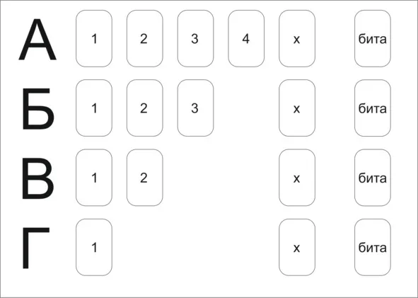 После этого посмотрите на то, что получилось. Возьмите стопку с картой самой старшей по значению из 4ех. Переверните и посмотрите на базовую карту. Это то, что занимает первое место в данном случае. Остальное по уменьшению.