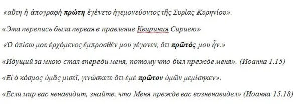 Такое пояснение упоминает сразу о двух переписях и устанавливает их хронологическое соотношение. И если использовать перевод, что перепись была до первого общепринятого правления Квириния, то это могло быть до 6 г. н. э. А эти сведения, весьма противоречивы.