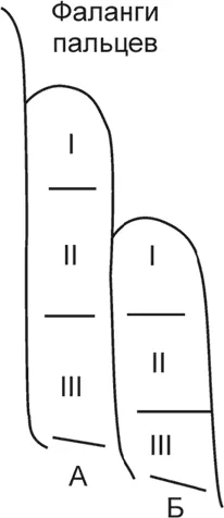 Если 2-й палец отделен от 3-го пальца (рис. 24-А), то человек будет самостоятелен в принятии своих решений тем больше, чем больше промежуток их разделения.