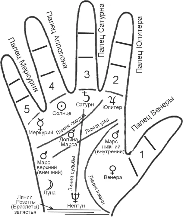 Напомним, что бугорок Венеры вместе с бугорком Луны занимает половину ладони. Соединенные таким образом они представляют материальный мир, который занимает весь низ ладони.