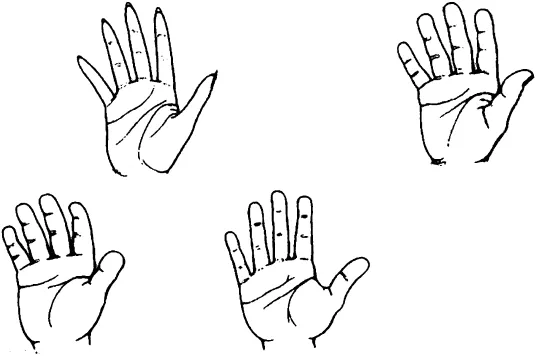 Довольно распространена классификация, согласно которой формы руки обозначаются (в соответствии с порядком перечисления стихий) как квадратная (земная рука), философская (воздушная рука), лопатообразная (огненная рука) и коническая (водяная рука).