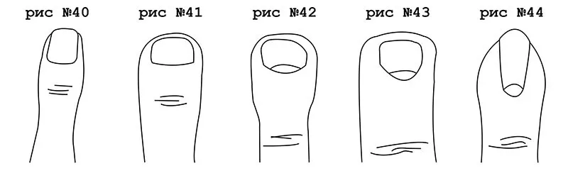 Слишком узкие (рисунок № 44) ногти, как и очень широкие, свидетельствуют о легкой возбудимости своего хозяина.