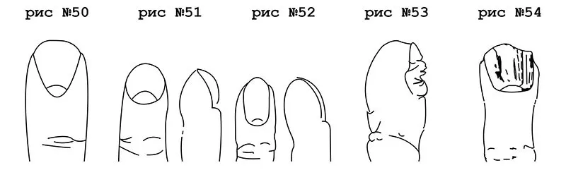 Продольные линии на поверхности ногтей (рисунок № 54) встречаются чаще, чем горизонтальные.
