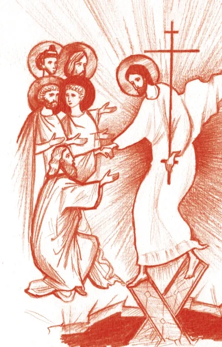 В первый же день недели Мария Магдалина приходит ко гробу рано, когда было еще темно, и видит, что камень отвален от гроба. Итак, бежит и приходит к Симону Петру и к другому ученику, которого любил Иисус, и говорит им: унесли Господа из гроба, и не знаем, где положили Его. Тотчас вышел Петр и другой ученик, и пошли ко гробу. Они побежали оба вместе; но другой ученик бежал скорее Петра и пришел ко гробу первый. И, наклонившись, увидел лежащие пелены; но не вошел во гроб. Вслед за ним приходит Симон Петр, и входит во гроб, и видит одни пелены лежащие, и плат, который был на главе Его, не с пеленами лежащий, но особо свитый на другом месте. Тогда вошел и другой ученик, прежде пришедший ко гробу, и увидел, и уверовал. Ибо они еще не знали из Писания, что Ему надлежало воскреснуть из мертвых. Итак, ученики опять возвратились к себе. А Мария стояла у гроба и плакала. И, когда плакала, наклонилась во гроб и видит двух Ангелов, в белом одеянии сидящих, одного у главы и другого у ног, где лежало тело Иисуса. И они говорят ей: жена! что ты плачешь? Говорит им: унесли Господа моего, и не знаю, где положили Его. Сказав сие, обратилась назад и увидела Иисуса стоящего; но не узнала, что это Иисус. Иисус говорит ей: жена! что ты плачешь? кого ищешь? Она, думая, что это садовник, говорит Ему: господин! если ты вынес Его, скажи мне, где ты положил Его, и я возьму Его. Иисус говорит ей: Мария! Она, обратившись, говорит Ему: Раввуни! – что значит: Учитель! Иисус говорит ей: не прикасайся ко Мне, ибо Я еще не восшел к Отцу Моему; а иди к братьям Моим и скажи им: восхожу к Отцу Моему и Отцу вашему, и к Богу Моему и Богу вашему. Мария Магдалина идет и возвещает ученикам, что видела Господа и что Он это сказал ей.