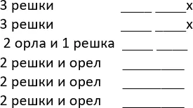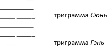 Записываем гексаграмму снизу вверх на листке бумаги одновременно с бросанием монет и получаем: