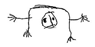 Рисунок человека, автор которого – пятилетний ребенок с задержкой в развитии. Части тела неправильно скоординированы.