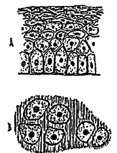 А (наслаивающиеся клетки эпителия) – пример клеток при контакте: отметьте, однако, что их ядра находятся на большом расстоянии друг от друга. В (клетки гиалинового хряща) – пример клеток, разделенных внешним цитоплазматическим матриксом.