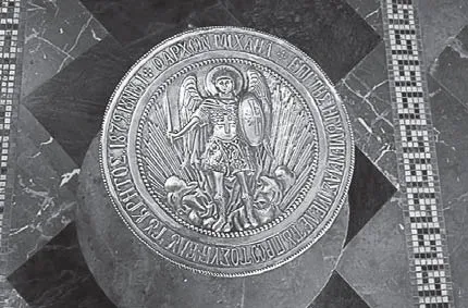 В центре храма в 1879 г. установлен небольшой столп с серебряным изображением архангела Михаила. По преданию, он указывает то самое место, где ангел стоял, разговаривая с царем Давидом.
