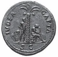 Серебряный сестерций Веспасиана 71 г. н. э. Скорбная женская фигура символизирует покоренную Иудею