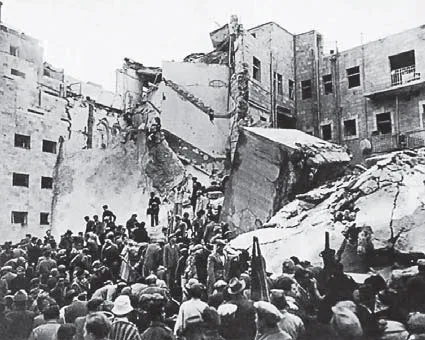 Иерусалим, ул. Яффо. Июнь 1948. Разрушенный дом от прямого попадания крупнокалиберного снаряда