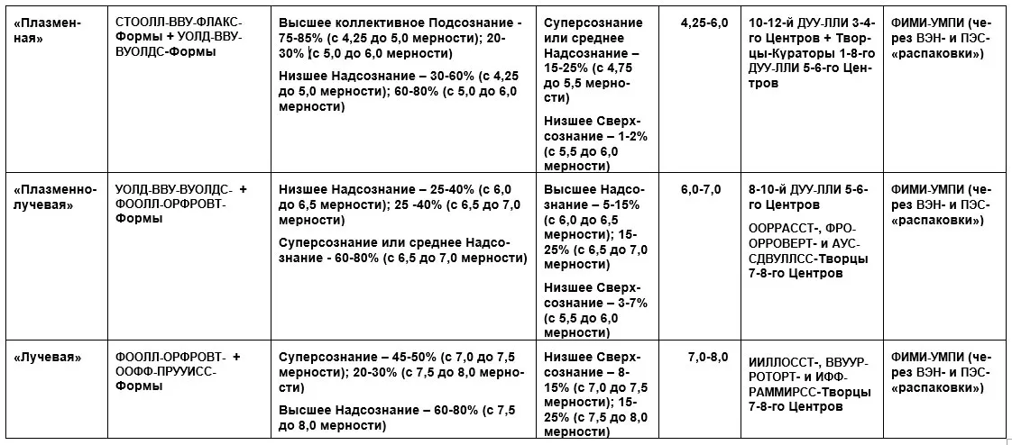 Приложение 1. Таблица Уровней Самосознания