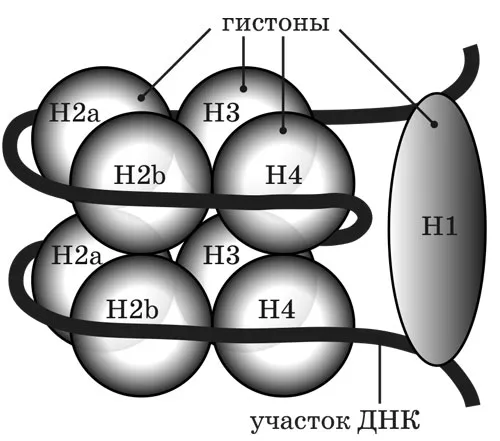 Рисунок 5.0866. Нуклеогистоновый комплекс хроматина (нуклеосома)