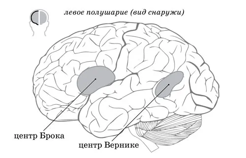 Рисунок 6.0212. Схема расположения речевых центров головного мозга: центры Брока и Вернике