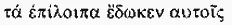 – Vulgata: sumens reliquia dedit eis. – Resch, 51.↩︎