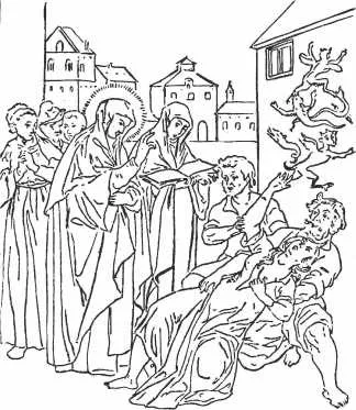 Рис. 87. «Изгнание бесов». Гравюра Адама ван-Ноорта (1562–1641)