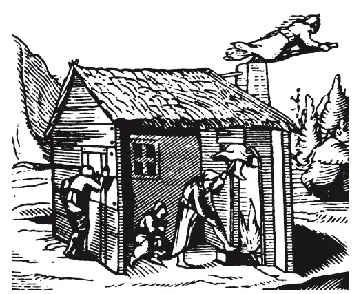 Рис. 21. Ведьма, вылетающая в трубу (из соч. А. Палинга, 1659)