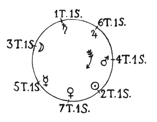 Совершенно иной отпечаток получила астрология после того, как греки утвердили свое господство в Египте, а александрийский музеум стал центром науки в древнем мире. Здесь трудились многие знаменитые математики, физики и астрономы. Наиболее известными из них были до P. X. Евклид (около 200 г.), Эратосфен (род. в 275 г.), Гиппарх (ок. 160 г.) и Герои (ок. 100 г.). Но самым знаменитым из всех ученых Александрии был астроном Клавдий Птоломей (150 г. по P. X.), взгляды которого на строение мироздания и движение небесных тел признавались за догмат в течение всей эпохи древности и Средних веков, вплоть до Коперника. Птоломей полагал, что земля неподвижна и находится в центральном пункте мира. Около земли вращаются восемь сфер; в семи внутренних находятся планеты, в крайней восьмой находятся неподвижные звезды. К планетам относятся также два «светила небесные», Солнце и Луна, а последовательный ряд всех «странствующих звезд» представляется в следующем виде: ближе всего к земле, в первой сфере, движется Луна, затем следуют Меркурий, Венера, Солнце, Марс, Юпитер и Сатурн. Других планет не было известно.