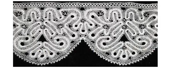 The basis of the ornament in such lace, which is performed to decorate the ends of towels and valances of wedding sheets, is a dense, up to 1 centimeter wide, ribbon, very often saturated red, which, whimsically wriggling, builds a pattern, and, above all, a meander pattern. It is interesting that such a decorative solution is typical only for North Russian, and in particular, for Vologda lace (Table 3).