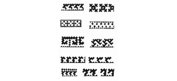 This is all the more likely that Andronovo-type ornaments are characteristic not only for typesetting weaving of North Russian peasant women, but are often found in embroidery, lace and typesetting in other Russian provinces of the late 19th and early 20th centuries. In addition, we can trace the existence of the Andronovo type ornament in the Russian, and more broadly, the East Slavic, tradition over many centuries. So G. N. Klimova, speaking about the traditions of the ancient geometric pattern, notes that they are “present” in the ornament of Russian gold embroidery of the 15—17 century, i.e. there is a stability of patterns of this type in Russia in the past four to five centuries. There is information that lowers their age to the 11—13th century”. Here it makes sense to refer to the materials published by N. A. Mayasova. Without much effort, you can see that most of the attire of the characters depicted in the facial sewing of medieval Russia is filled with rhombic, zigzag and meander patterns. So the meander braid fills the halos of the Mother of God and the saints on the shroud “The Appearance of Our Lady to Sergius” of the second half of the 15th century, the halos of Nikola and Nikola Mozhaisky on the shroud of the early 16th century, it adorns the robes of John the Baptist on the banner of the last quarter of the 16th century and the omophorion of Metropolitan Jonah in the 17th century sewing. Meander braids, rhombuses, crosses fill the clothes of the characters, architectural structures, and even manure on the veil of “Nikola with a Life” of the second half of the 17th century. It should be noted that it is on the last veil in the filling of some details – the clothes of Nikola and the walls of the temples – that the ancient Paleolithic rhomboeander ornament of the Mezin type is presented in its pure form. In the composition “Presenting the Tsarina” 1602 on the robe of the Mother of God are intricately drawn swastikas (Table 7), and on the shroud “Position in the Tomb” ornaments of the Andronovo type adorn the garments of angels, the Mother of God and even a horizontal stripe over the body of Christ. The background of one of the most ancient monuments of Russian facial sewing – the altar shroud of the 12th century made in Novgorod – is all filled with circles of “jibs”, a characteristic motif of Andronov’s ornamentation (Table 5). Not only in sewing, but also in other types of medieval Russian art, we find elements of the ancient Andronovo ornament. So on the ground of the 15th century miniature depicting the prophet Zechariah, made in Moscow, among the various signs are visible “jibs”, swastikas and various swastikas (Table 8). An interesting ornamental composition is presented on a slate spindle, found in a Slavic rural settlement of the 11—13th century near the city of Ryazan, in the area of the Pronskaya SDPP reservoir. On it we see an image that vaguely resembles an Orthodox cross and a human figure at the same time, because the upper and lateral ends of the cross end in tridents, very similar to the three-fingered hands, characteristic of the characters of the sacred circle since the time of Tripoli. This central link in the composition is surrounded by segments of meander spirals and swastikas (Table 9).